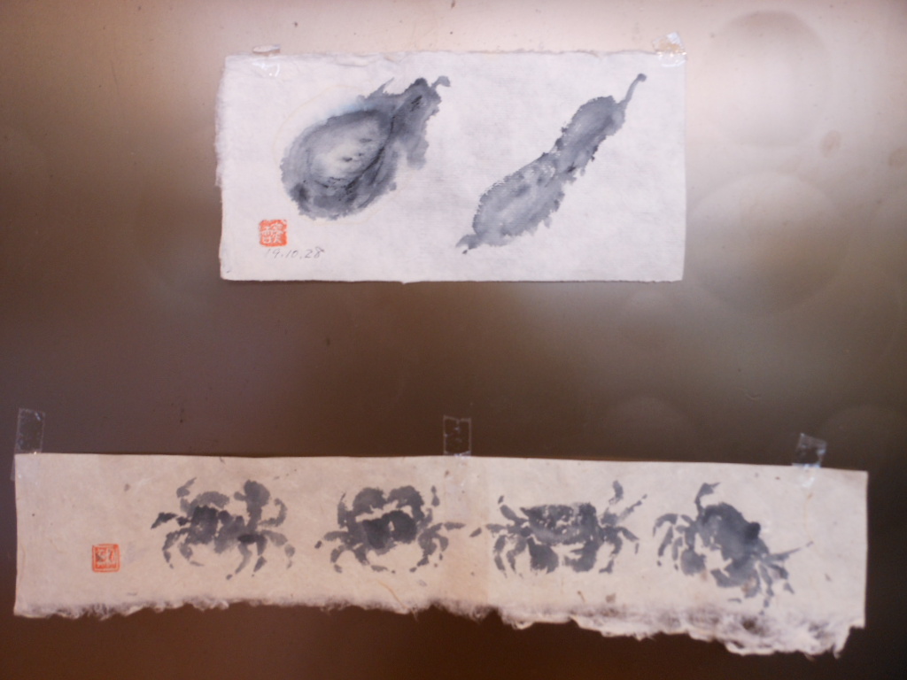 More walking, picked up some omiyage (souveniers - food) in the gym where there were also diplays of artwork, and tried a yaki imo (roasted sweet potato) before we boarded the boat back 2 or 3 hours later. As we waited for the boat the sky became overcast, and now, a few hours later it's really windy, we'll have rain tonight or tomorrow.